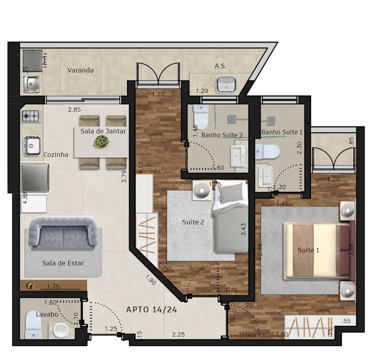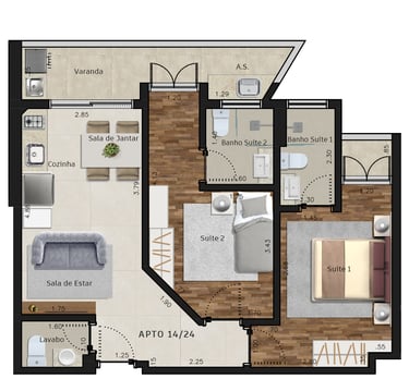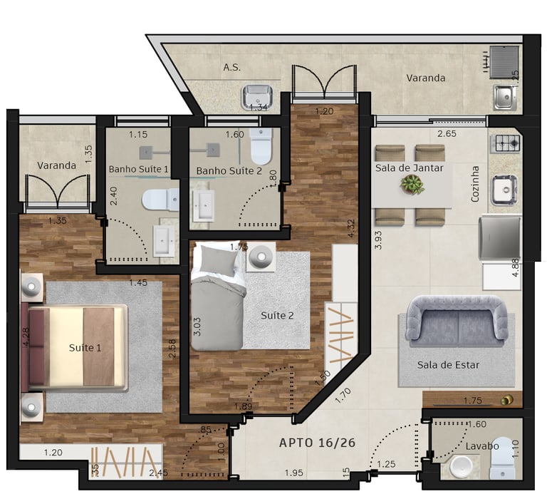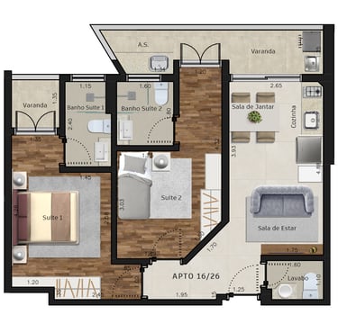 Apartamentos de 1, 2 e 3 dorms.