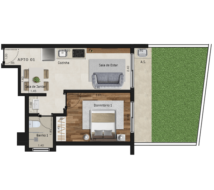 Dormitórios: de 1 a 3